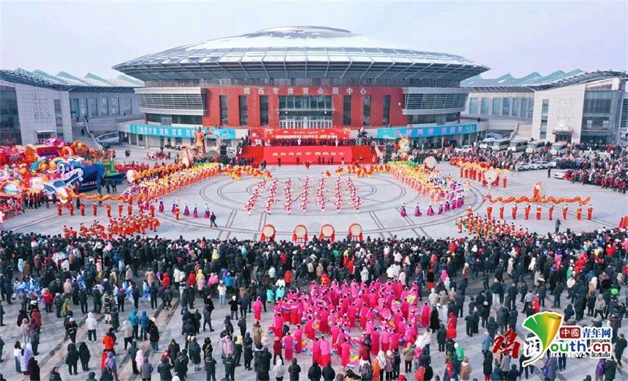 当天上午,市体育会展核心广场内锣鼓阵阵,人潮涌动,热闹不凡,9支秧歌步队轮流登场。身着彩衣、头戴花冠的秧歌队员们踏着东北大秧歌标记性的“十字步”翩然而至,既有保守的东北秧歌气概,又融入了现代元素,既有老一辈的腾踊扭转,又丰年轻人的芳华节奏,引得不雅众连连喝采。